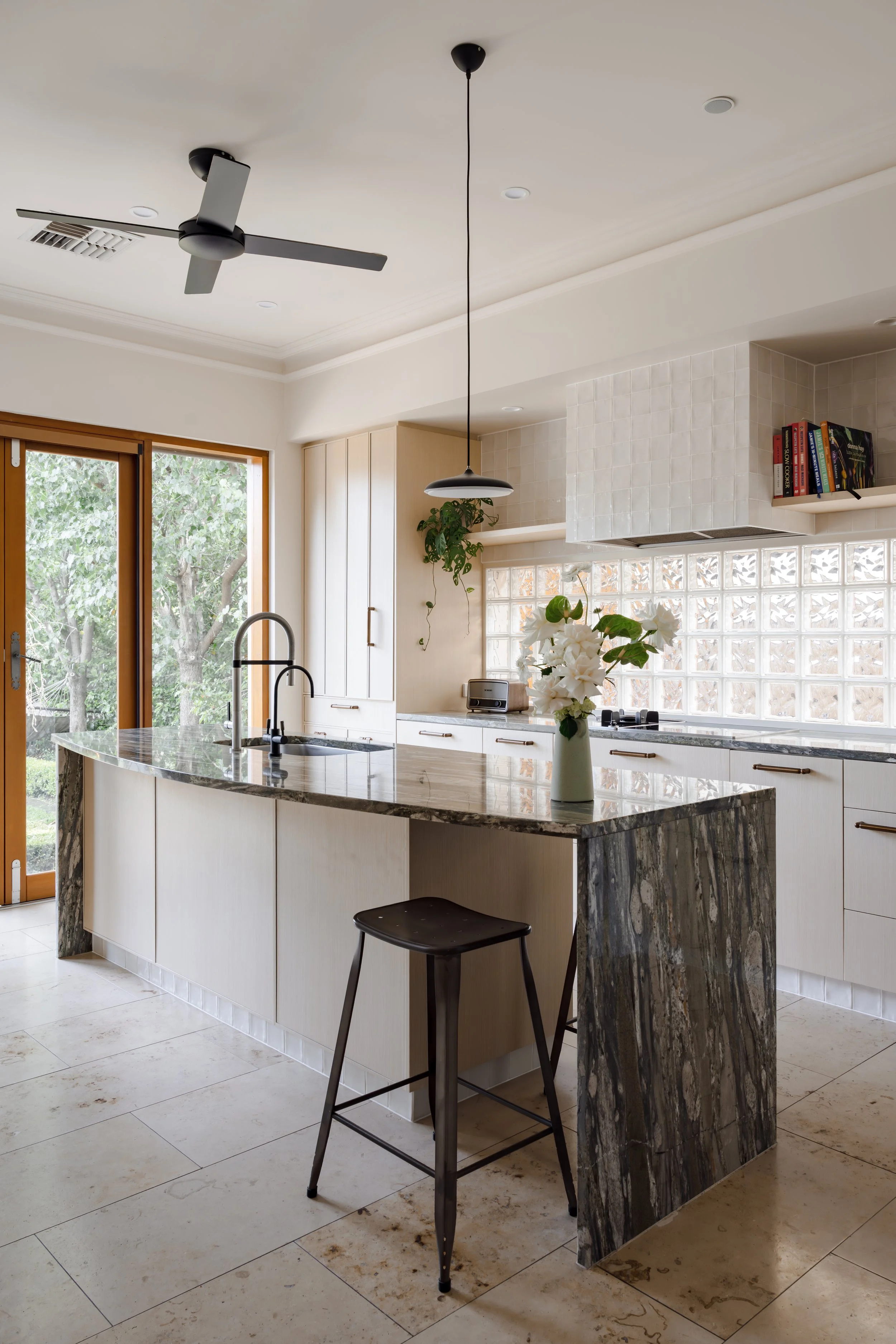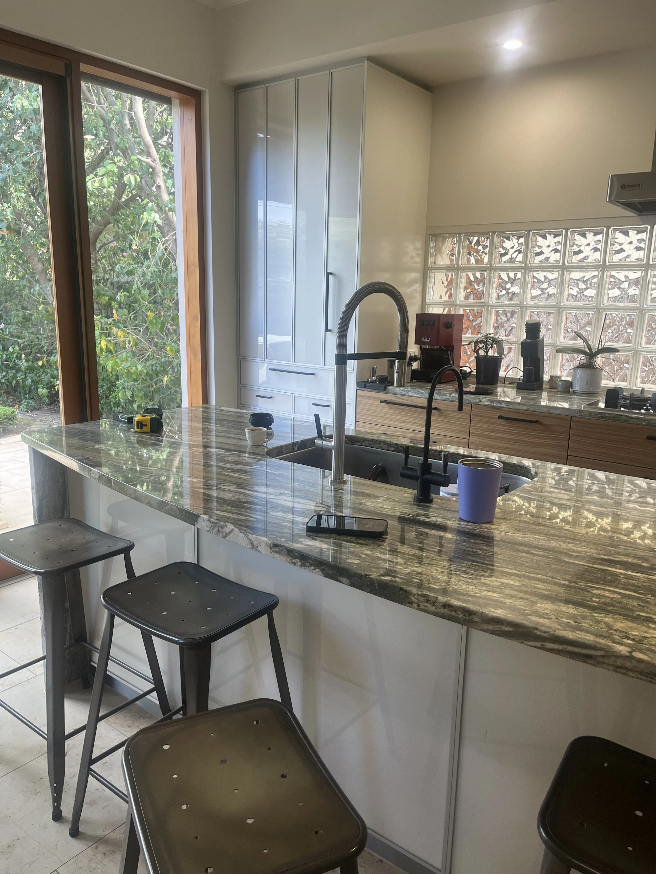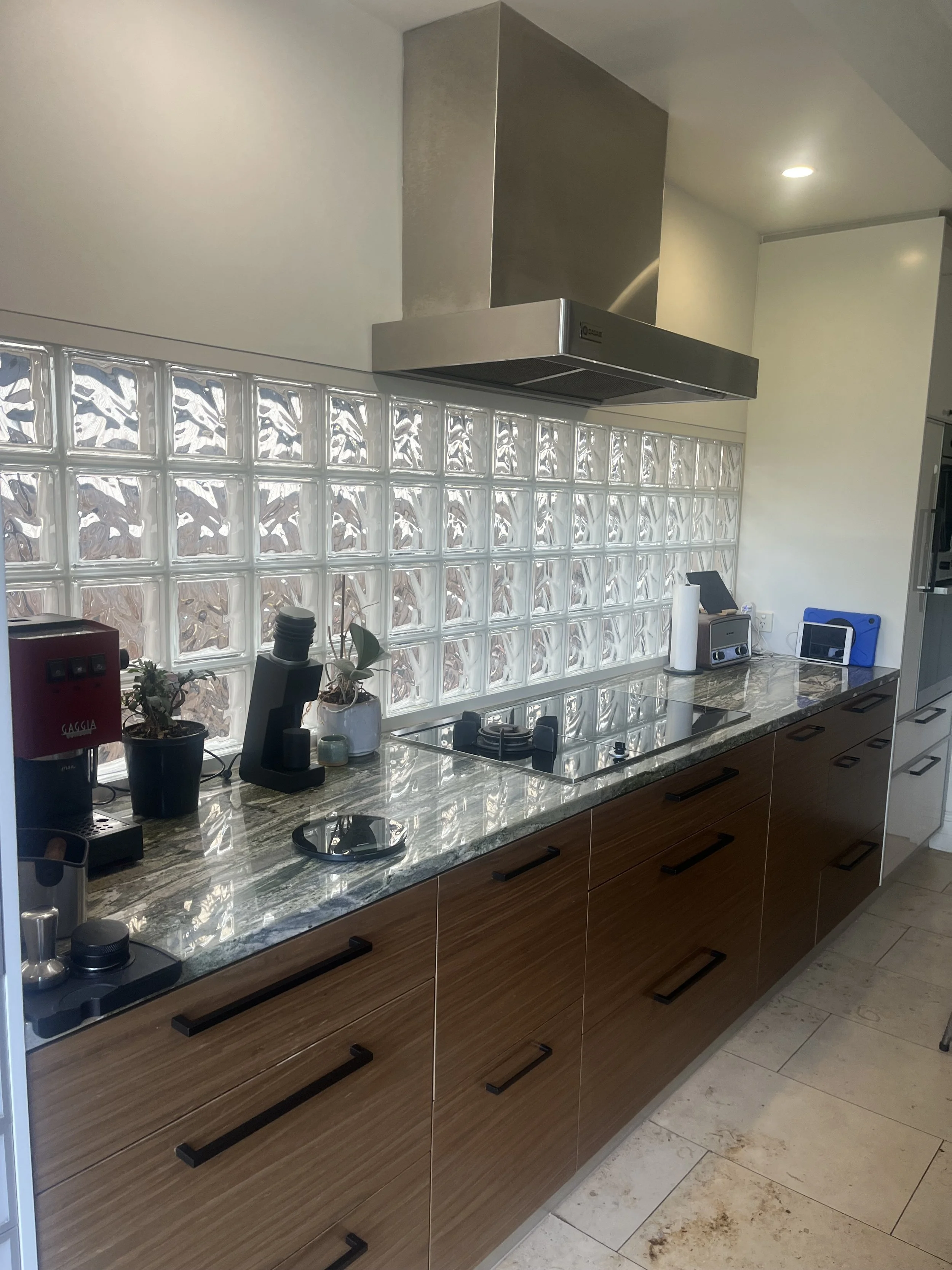 The clients at Egmont Terrace loved parts of their existing kitchen — particularly the benchtops and glass brick feature — but the space didn’t feel like them. While functional, there was a lot going on - the clients were craving cohesion amongst their home.